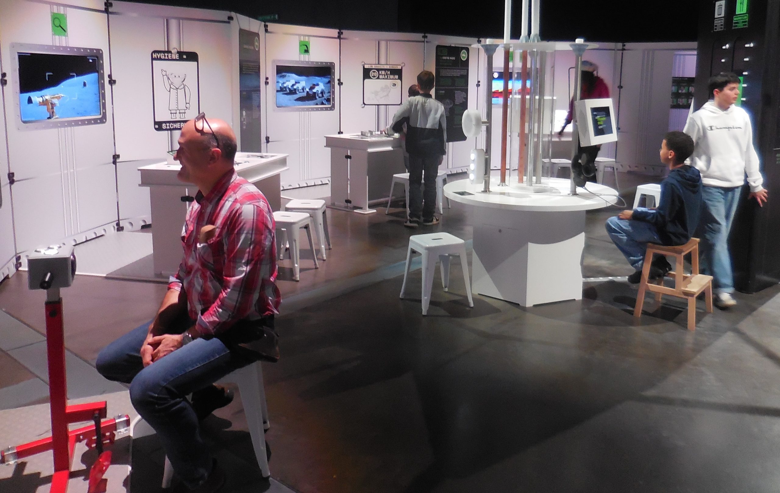 - Plongés dans un futur proche, nos visiteurs ont découvert le fonctionnement quotidien d’une base lunaire habitée. Ils ont découvert les principales données à surveiller pour maintenir la viabilité de la base : oxygène, eau, nourriture et déchets. Ils ont expérimenté 4 modules interactifs autour de la gestion des ressources et de l’écologie lunaire tels que le photo bioréacteur, l’imprimante 3D ou encore l’électrolyseur.