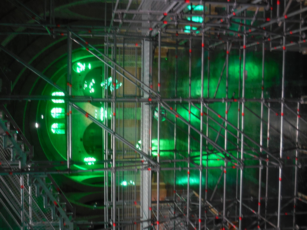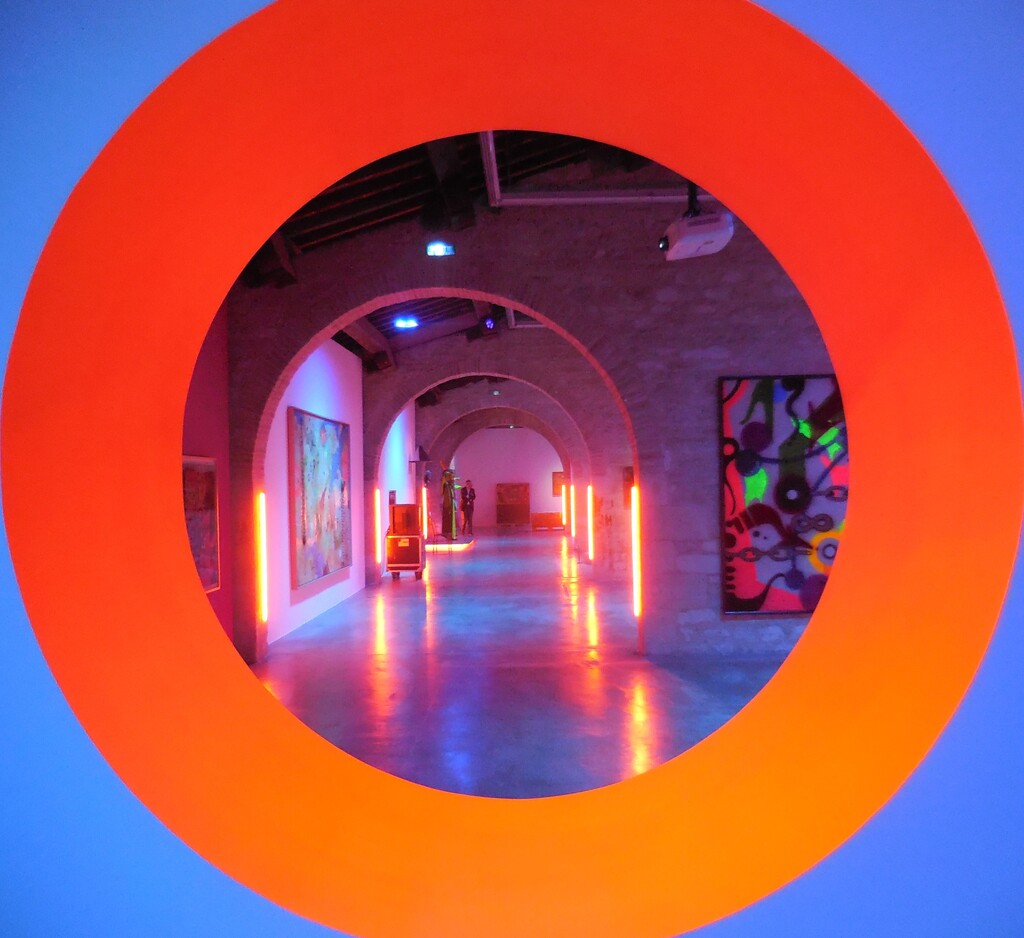 Cedric FAUQ, commissaire d’exposition, traverse la nef du Capc où on peut voir les prémices de ce que sera la prochaine exposition « Jardin des neuf soleils » de l’artiste Trevor Yeung.